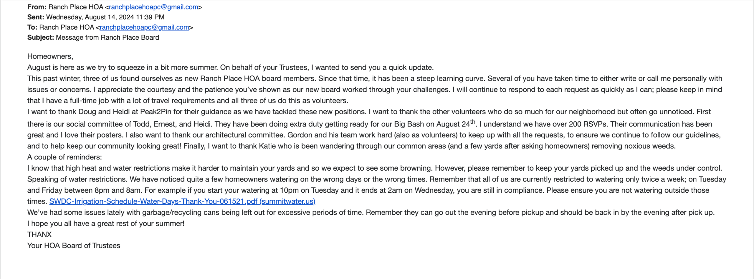 Ranch Place HOA