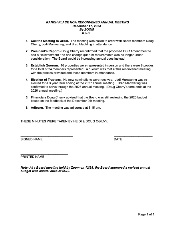 Annual Meeting Minutes Reconvened 2024